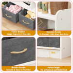 Lukzer 2-Layer White Bookshelf with Fabric Drawers, Wood Storage